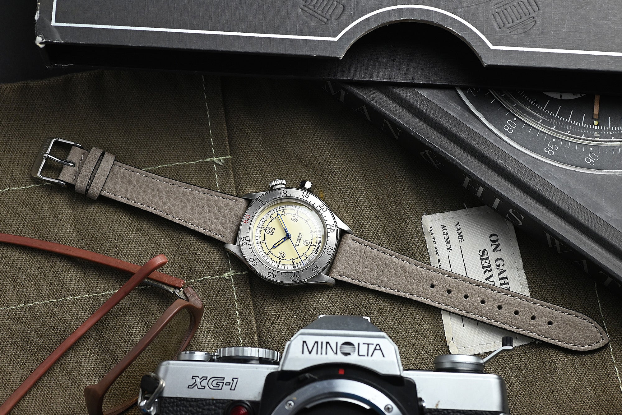 Vintage Natural Grain German Leather Oak Grey Watch Strap with Quick Release
