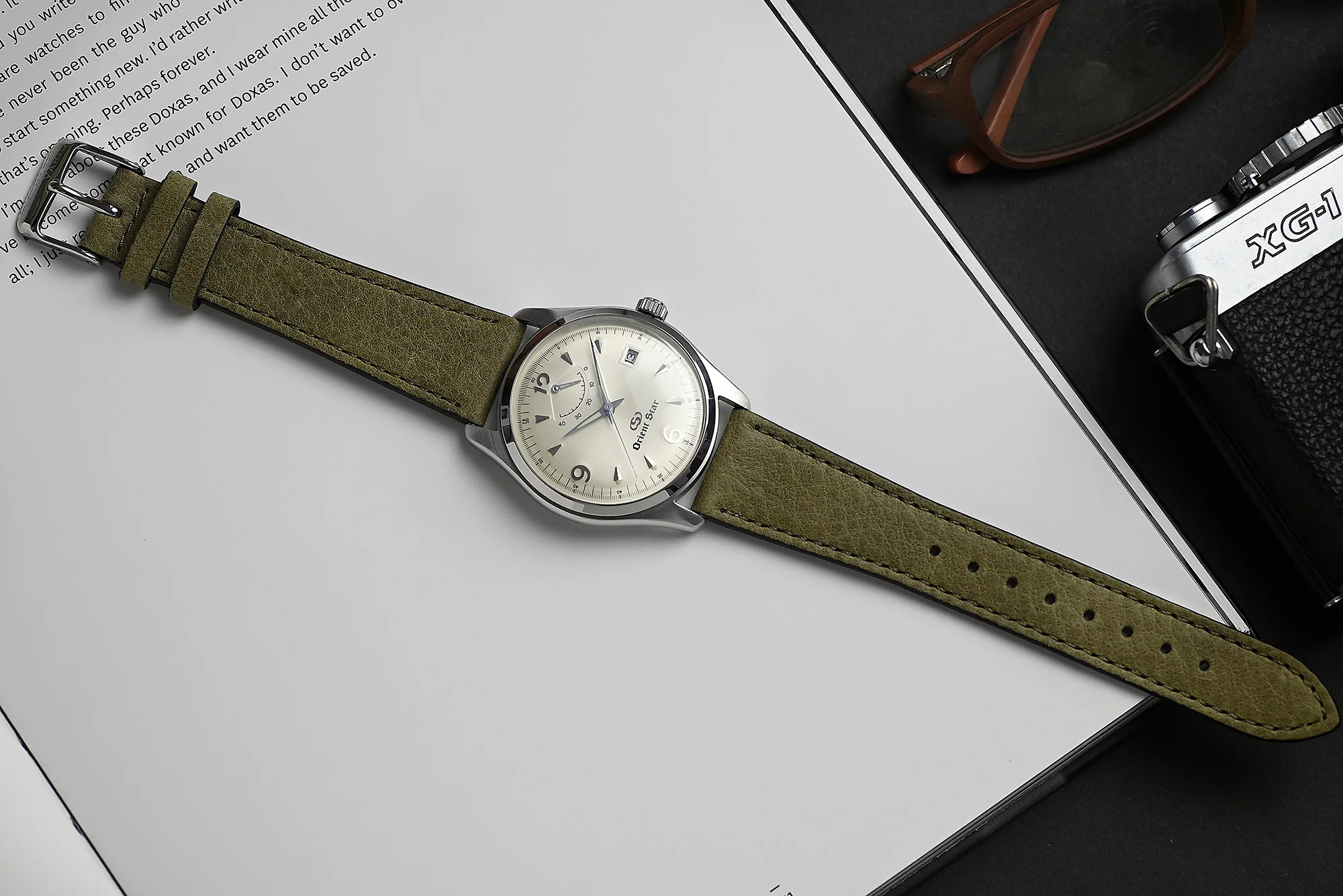 Carefully treated to bring out the leather's natural look with oil finish, this soft, warm and supple open pored full-grain leather from Germany requires no break-in period, and carries a vintage look right out of the box. Its quick release spring bars allow for easy installment by hand, so you can strap this beauty to your wrist in seconds. Natural features such as slight scarring are not concealed and serve to enhance the leather's authentic character. Various leather grains may happen from every shipment due to natural tanning process